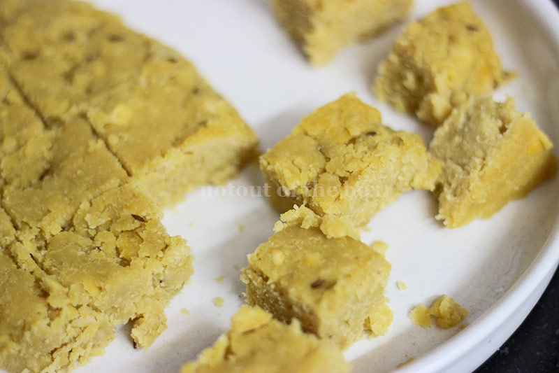 After it cools completely take out the pieces carefully. Your dhoka pieces are ready.