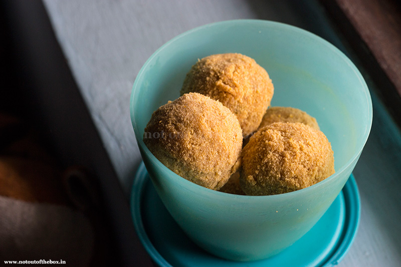 - To make the croquettes eggless I used besan mixture as a coating. And there was no difference in taste. But if you want to use eggs, just mix 2 eggs with little salt. Dip the croquettes and then roll into breadcrumbs.