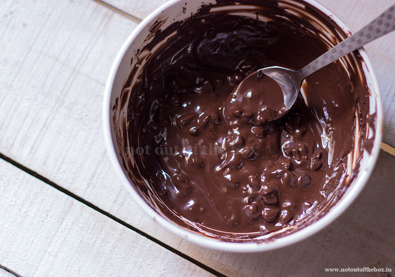 Take out the chocolate from refrigerator and keep it in room temperature for an hour. Now chop the chocolate coarsely.