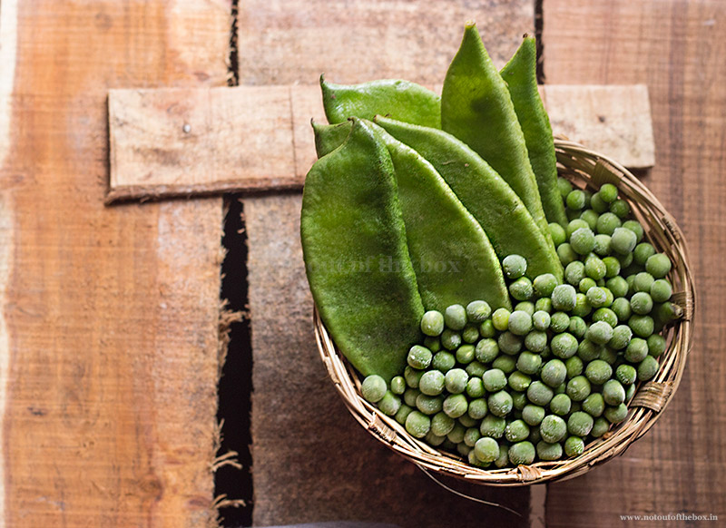 Temper with onion seeds in the remaining oil. Add the stir-fried flat beans and potatoes along with poppy seeds paste, peas, turmeric powder, green chilies, and salt. Mix and cook this uncovered on medium heat for 2 minutes.