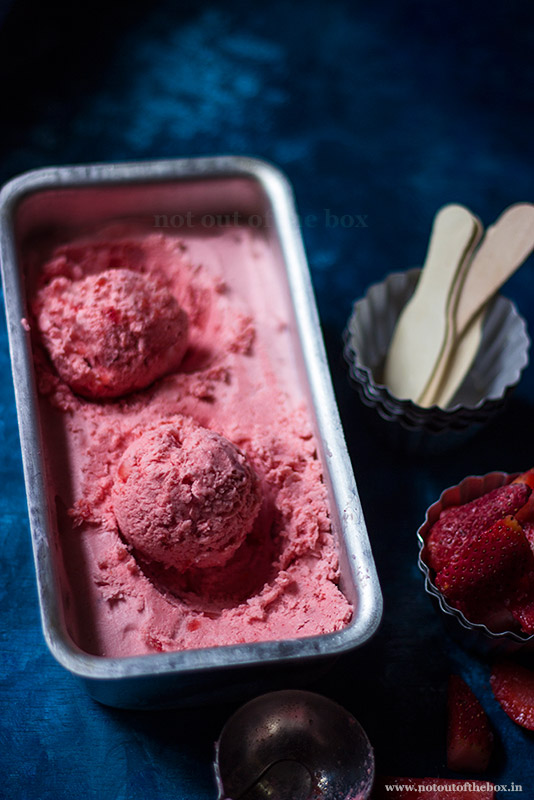 You need only two ingredients to make this decadent pink ice cream which is full of Strawberry flavour and not to forget those extra melt in mouth Strawberry bites.