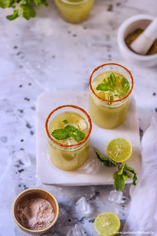 Recreating the cooler in my urban kitchen allowed me to play with the ingredients. The main ingredients were kept intact including the process of making it. I just garnished the glasses in my own way to glorify granny’s love for Aam Pora Sharbat. 🙂
